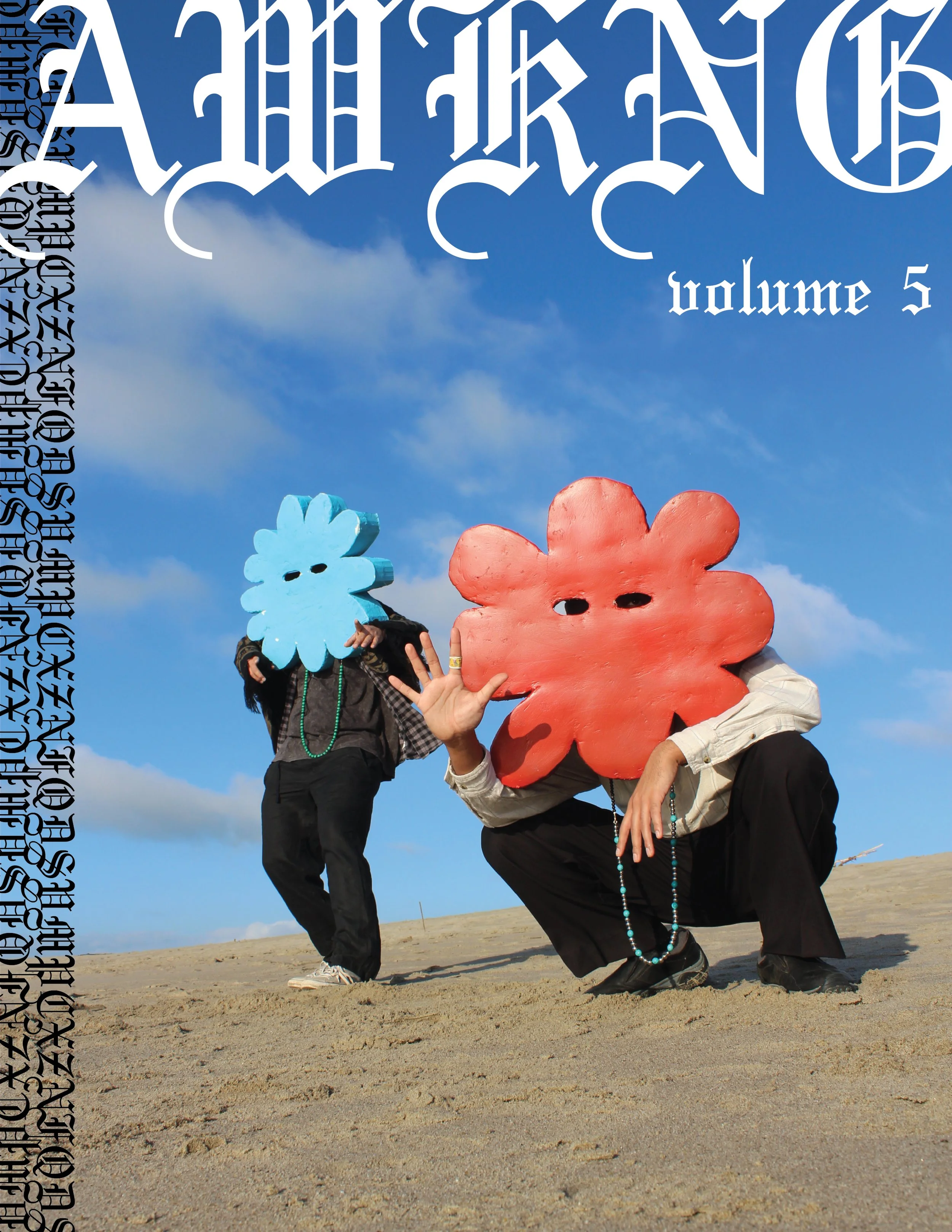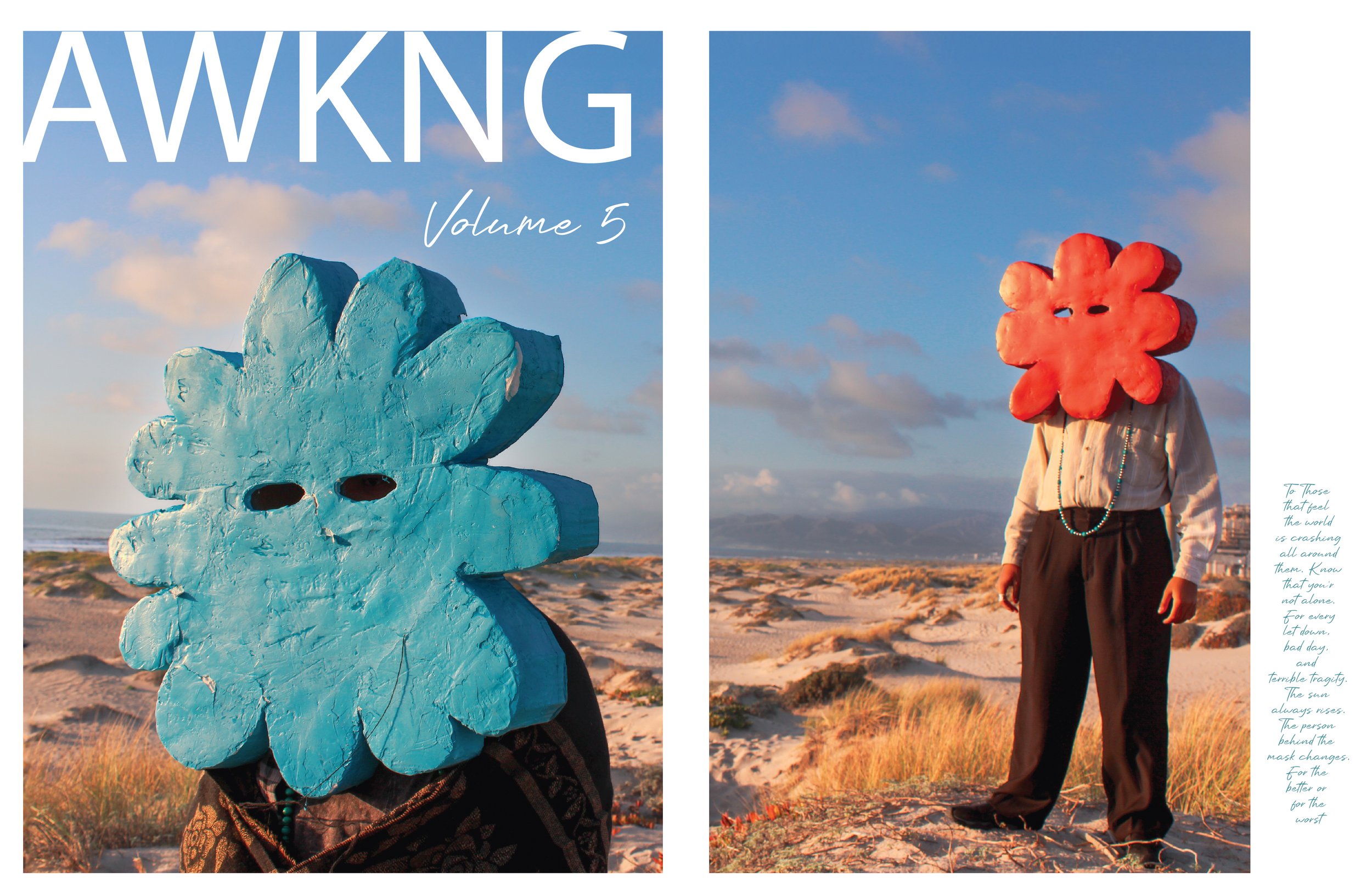 Volume 5 is a memoir of the creative process, a collection of moments in visual expression, an attempt to capture what it feels like to make art. What is it like living between reality and surreality, between life and art? This volume’s main focus was to create a narrative that carries the reader across the magazine.