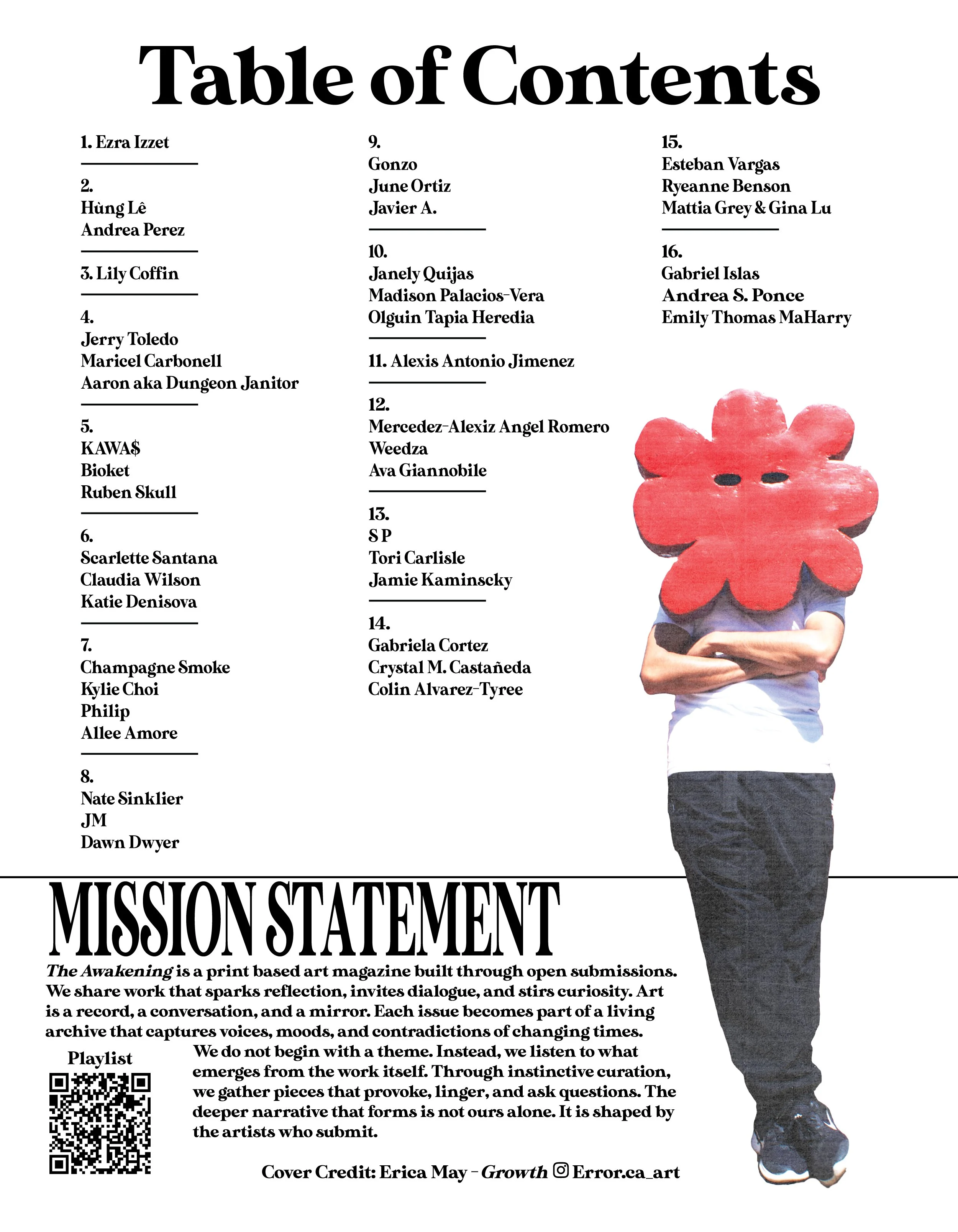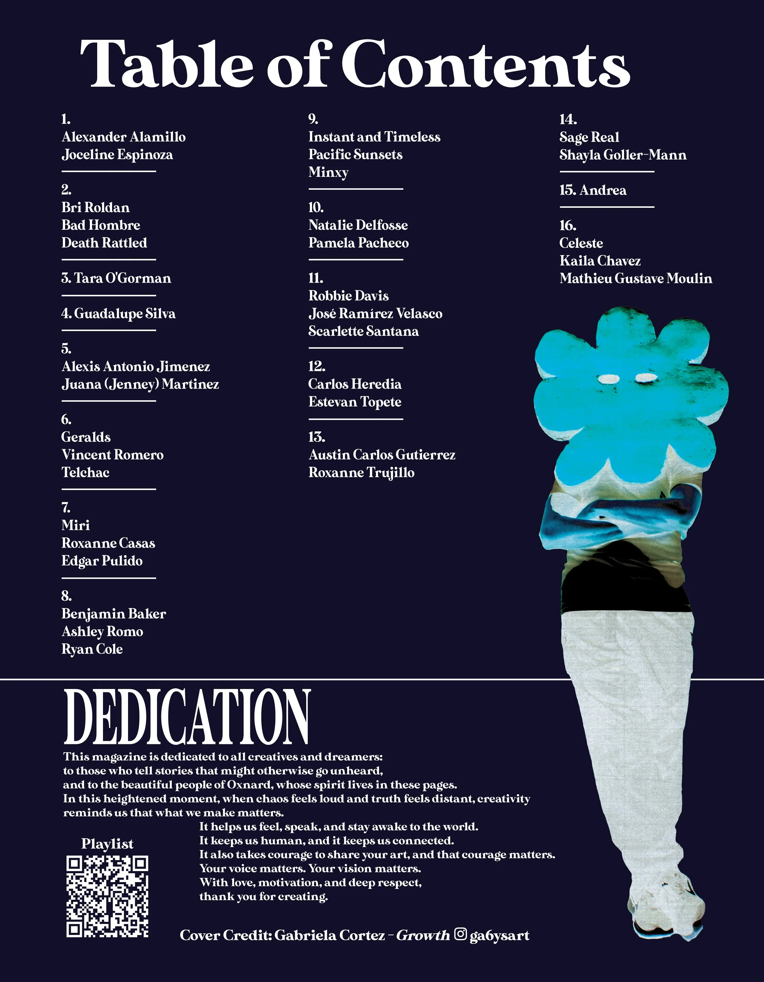 Volume 6 is our most ambitious issue yet. It is a double sided, flip book style publication showcasing work from 74 artists across Oxnard, Ventura County, and beyond. Each side features a distinct curation of bold, boundary pushing work that speaks to transformation, resistance, identity, and connection.